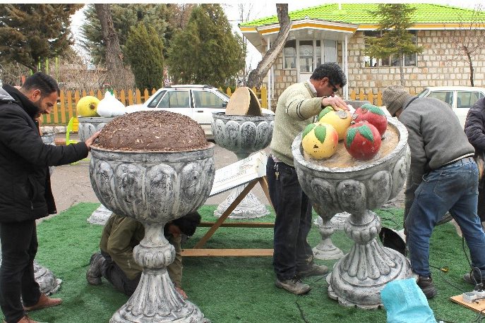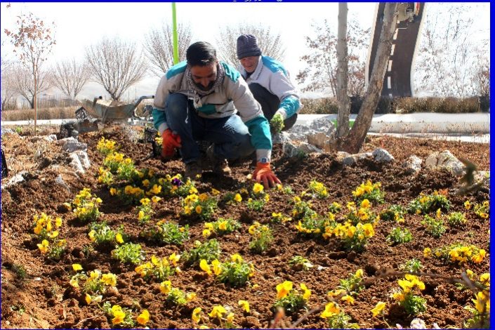 شروع به کاشت انواع گل های فصل (گل بنفشه)در باغچه ها و رفیوژها سطح دهکده و همچنین رنگ آمیزی و نوسازی المان ها، سطل های زباله و … در راستای زیبا سازی و استقبال از بهار