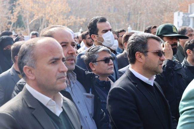 حضور مدیرعامل، هیات مدیره و جمعی از پرسنل سازمان در مراسم تشییع و تدفین شهید گمنام در مجموعه اداری امیر کبیر اصفهان.