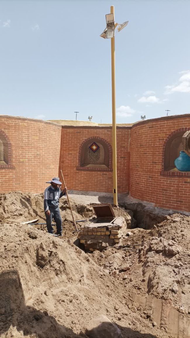 عملیات لوله گذاری و اجرای مسیر فاضلاب و همچنین جابجایی و نصب پایه چراغ های روشنایی معابر در منطقه ی نمونه گردشگری واحه